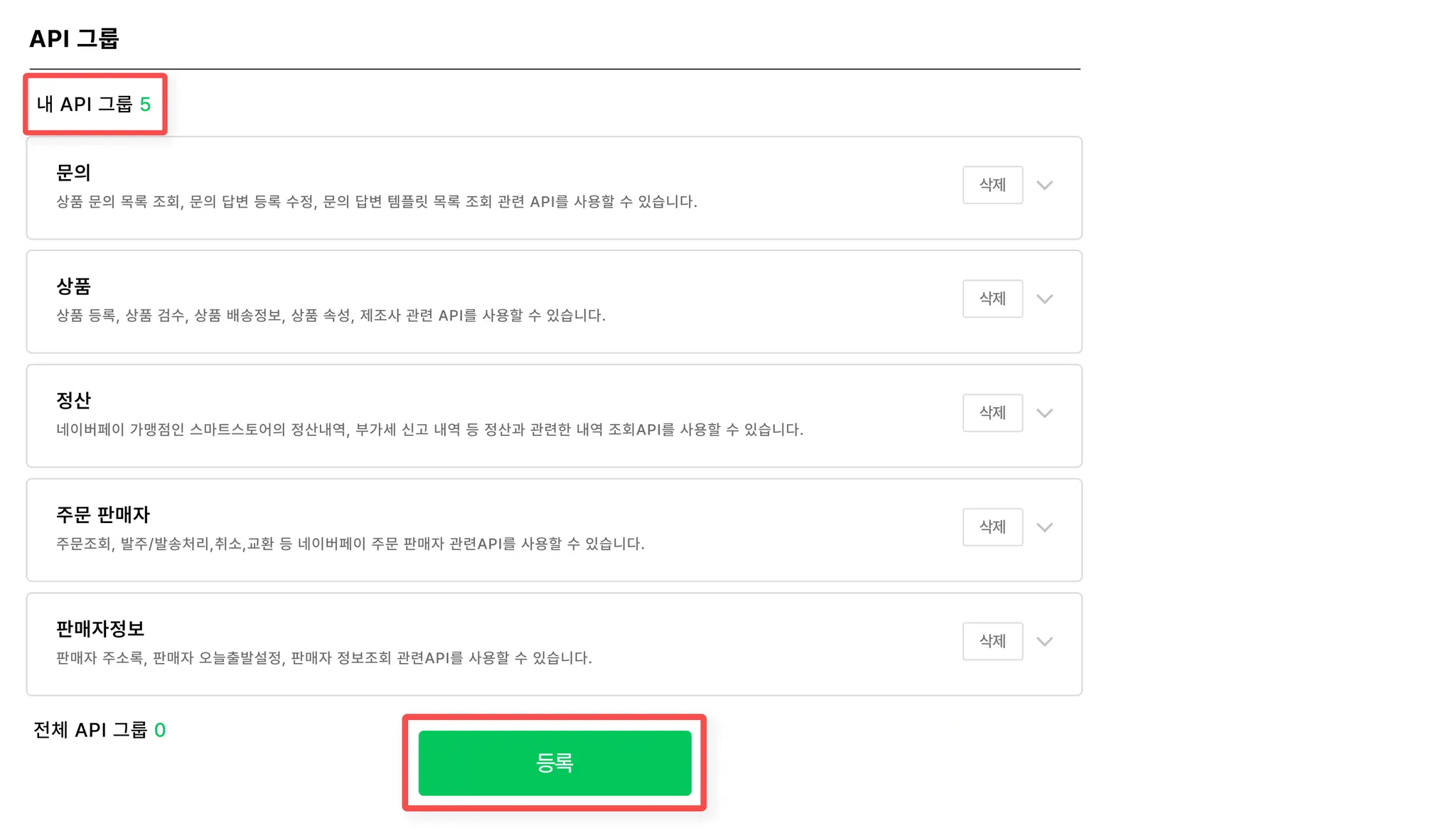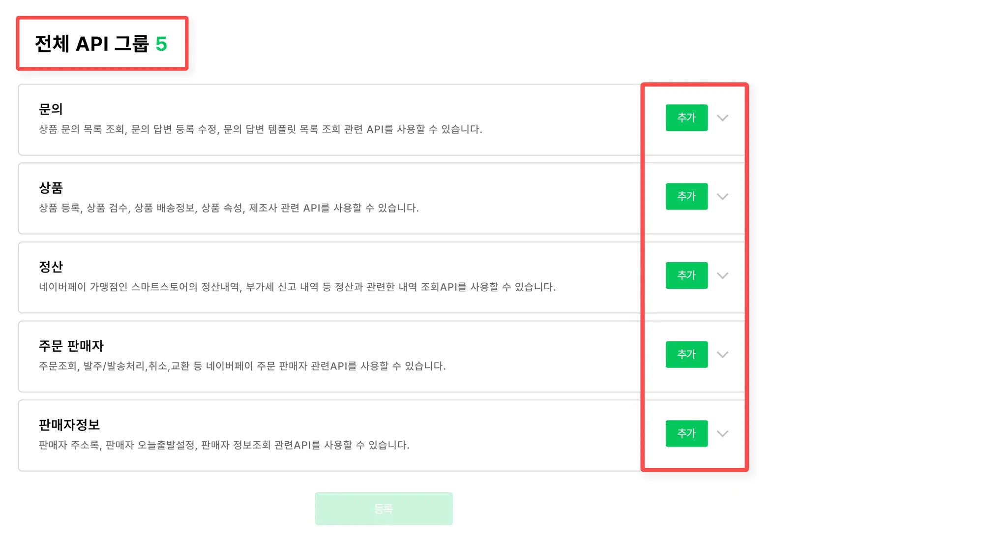 5개 모두 추가됐다면, 등록 버튼 눌러주세요.