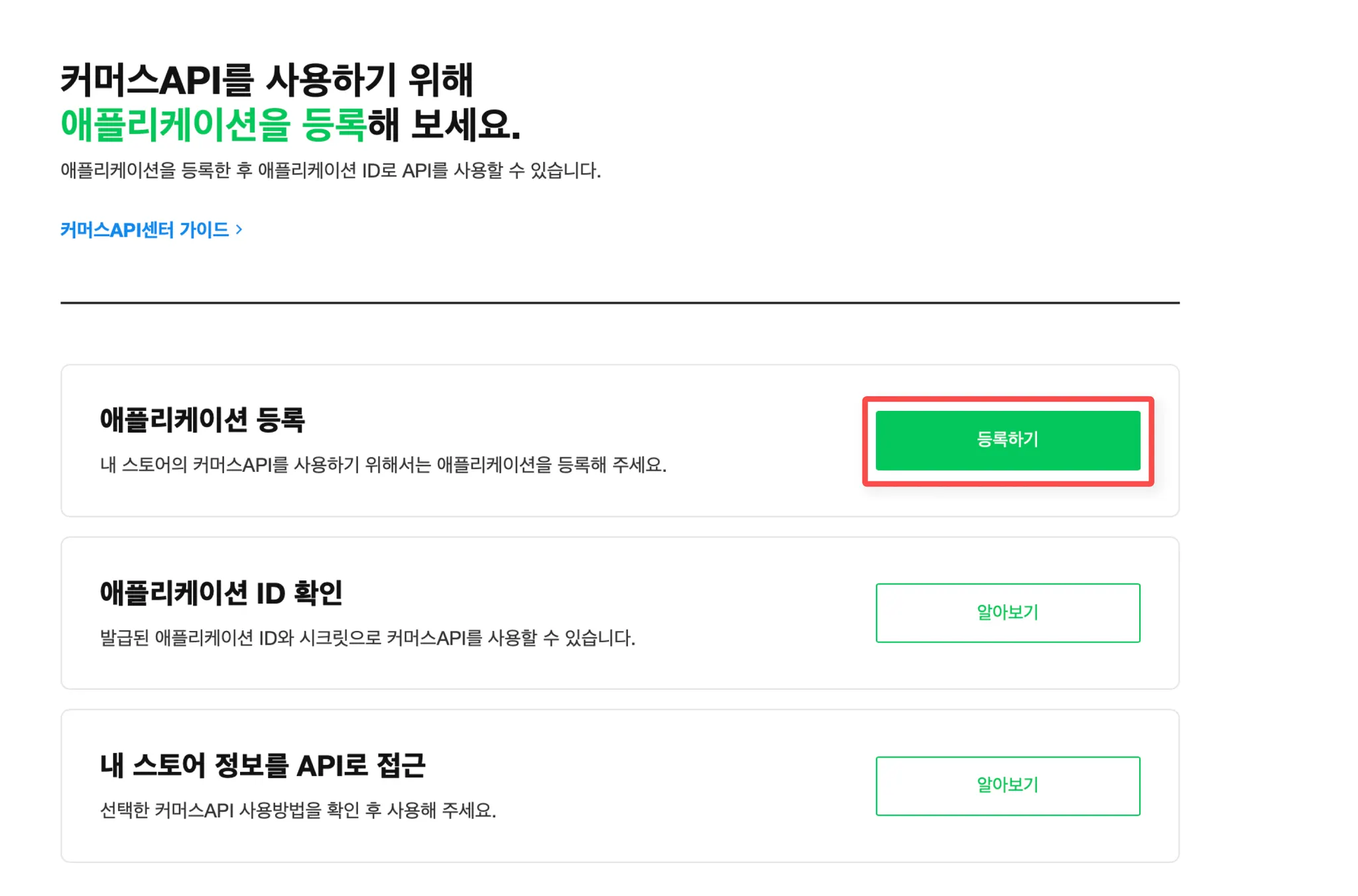 3단계. 스마트스토어 커머스 API 센터에서 API Key 를 발급해주세요.