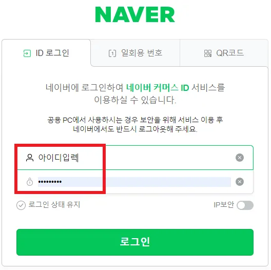 스마트스토어 로그인 하시는 아이디, 패스워드를 입력해주세요.