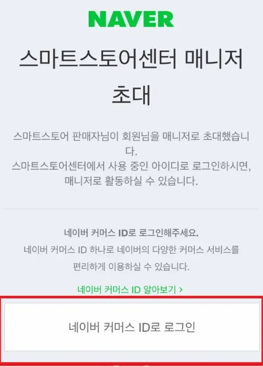 이렇게 창이 뜰텐데, 제일 아래의 ‘네이버 커머스 ID로 로그인’ 클릭
