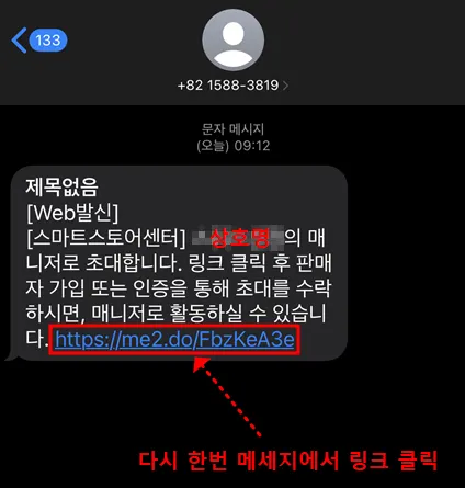 이렇게 문자가 오면, 아래의 파란색 링크를 눌러주세요.