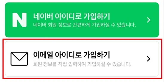 ‘이메일 아이디로 가입하기‘ 클릭해주세요.