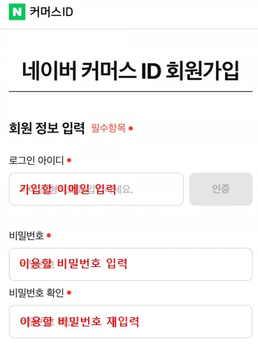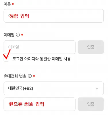 (‘로그인 아이디와 동일한 이메일 사용’ 체크 필수)