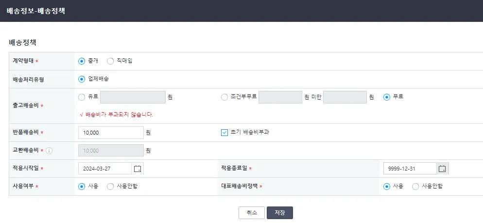2.우선 정상 입점이 되었는지 확인 후 배송 설정을 해야 합니다.