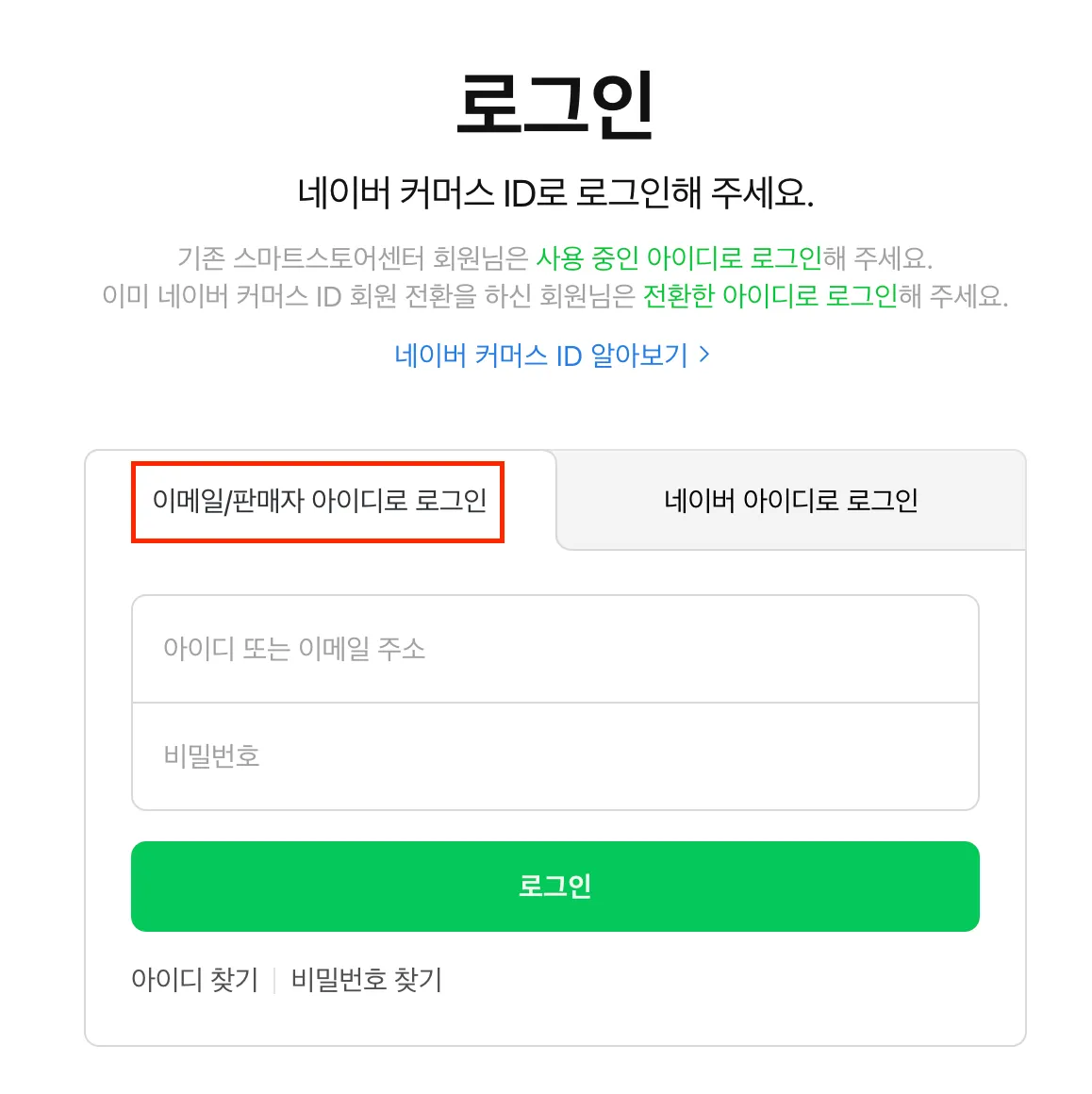 3.판매자 계정(ID) 관리 에서 회원상태/판매승인상태가 정상+승인완료 이어야 합니다.
