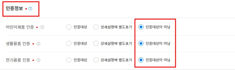 12.바로 아래 인증정보는 대상 아님 클릭하시면됩니다.