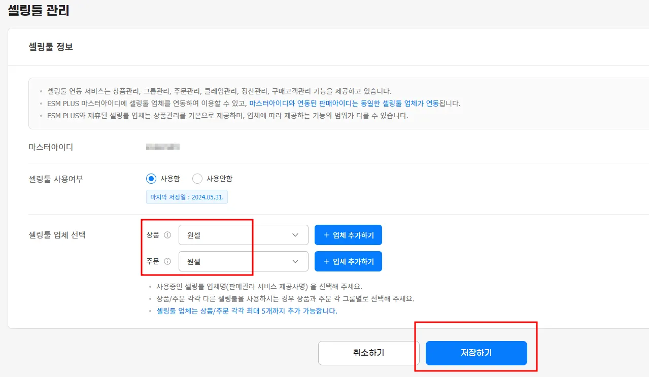 5.헤이셀러 제휴 업체인 원셀 등록 후 저장하기 눌러주세요.