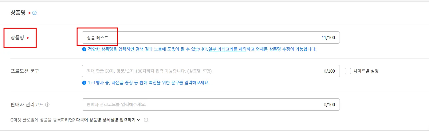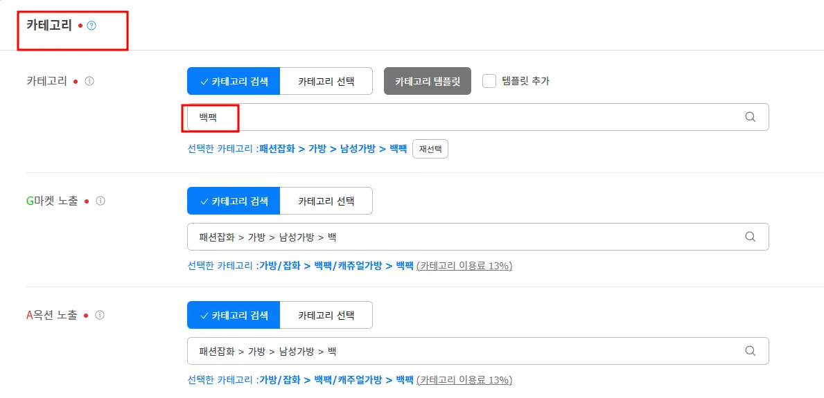 7.상품 등록에 들어가서 상품명+카테고리를 아래와 같이 작성 해줍니다.