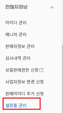 정상인걸 확인 후 판매자정보에 셀링툴 관리를 눌러주세요.