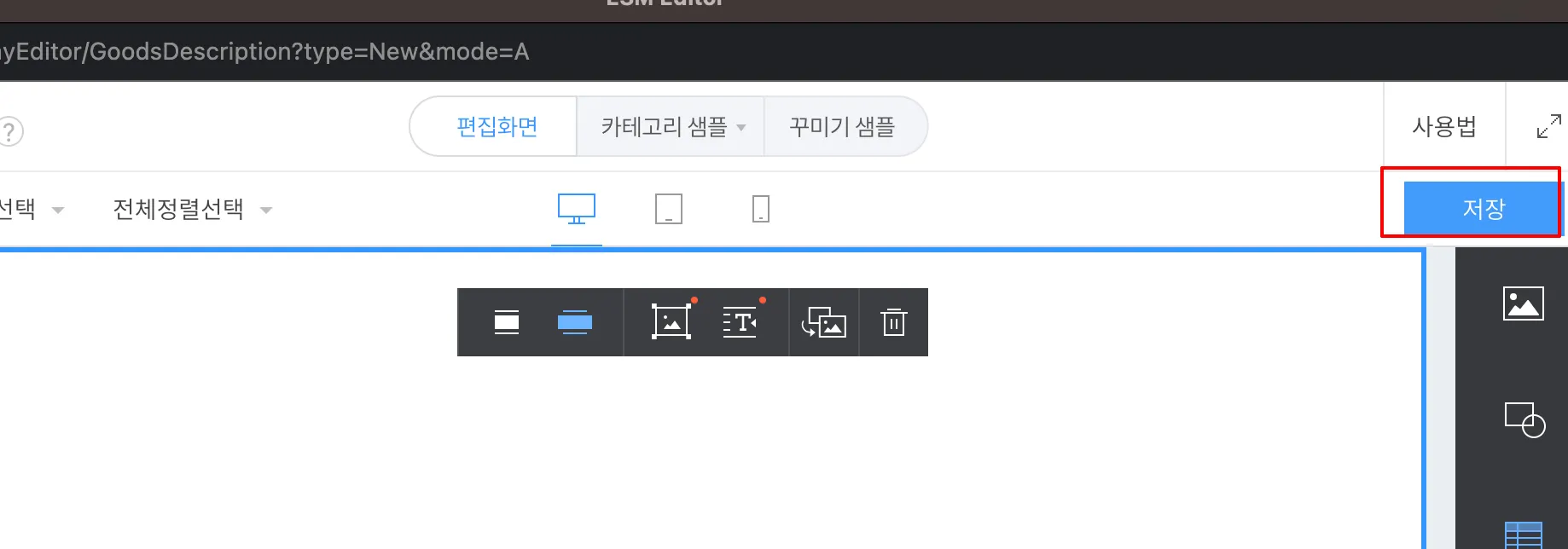 그 후 우측 위 저장 버튼을 누른 후 에디터를 닫아줍니다.