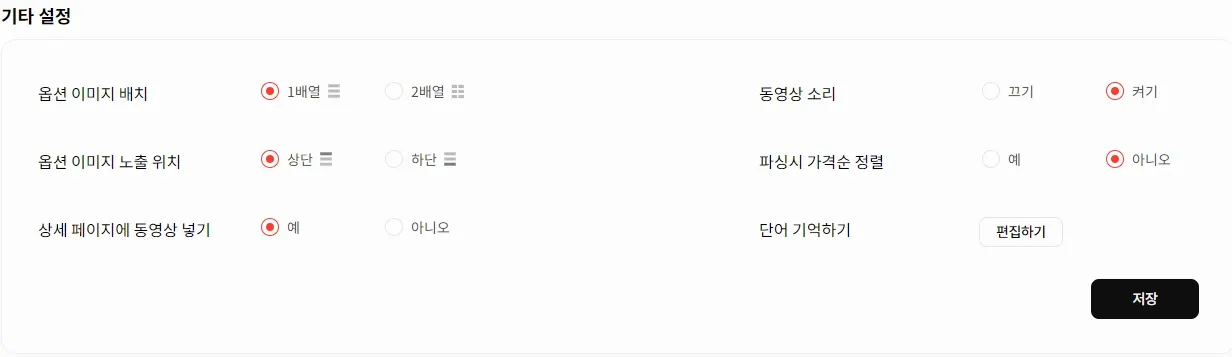 상세 페이지에 동영상넣기 : 상세 페이지에 타오바오/티몰에서 제공하는 동영상 추가 여부에 따라 예/아니오 설정